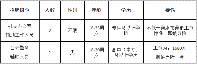 衡水天翔勞務派遣有限公司接受用人單位委托,面向社會公開招聘勞務派遣制輔助工作人員3名。